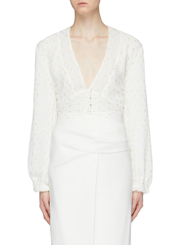 'Anais' tie cutout back fil coupé crepe V-neck top - Elissa McGowan - White