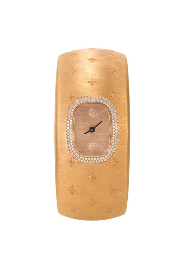 'Cleopatra Losanghe Biz' diamond 18k yellow gold cuff watch - Buccellati Watches - Metallic