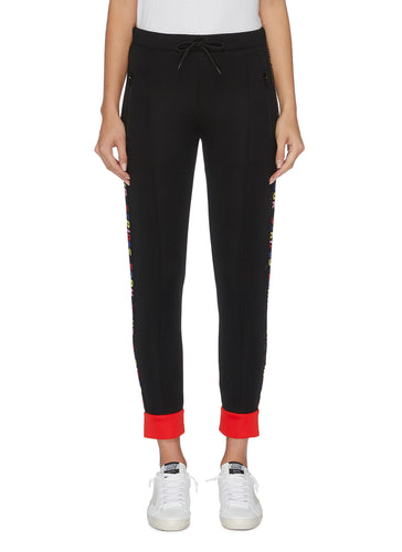 'Earn Your Stripes' slogan embroidered outseam zip cuff ribbed track pants